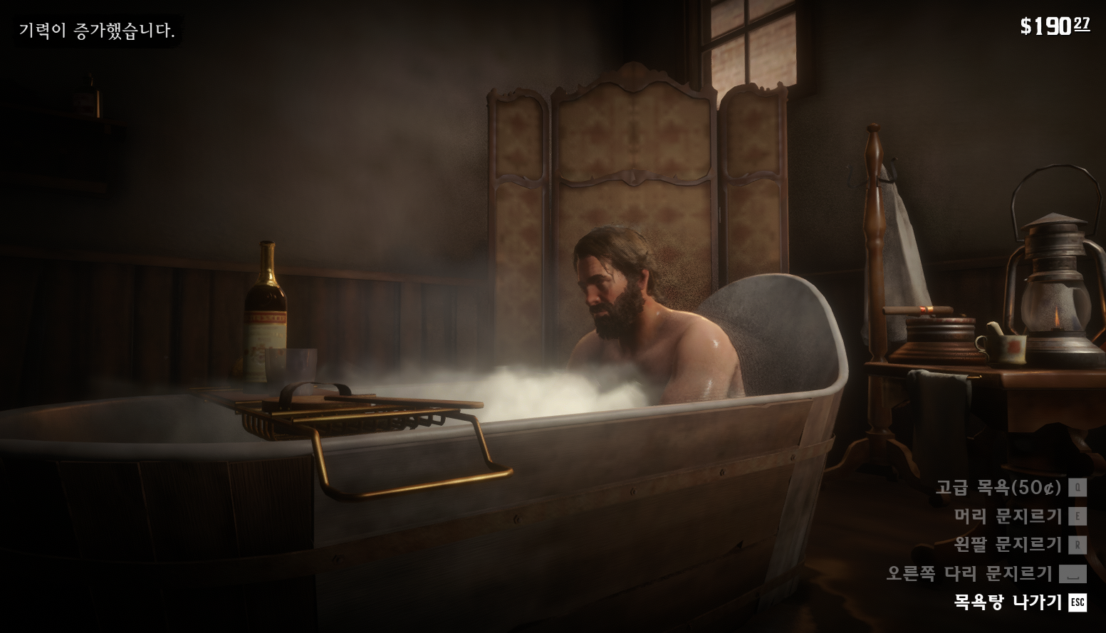 모든 부위를 전부 씻으시면 기력이 증가했다는 문구가 뜹니다.