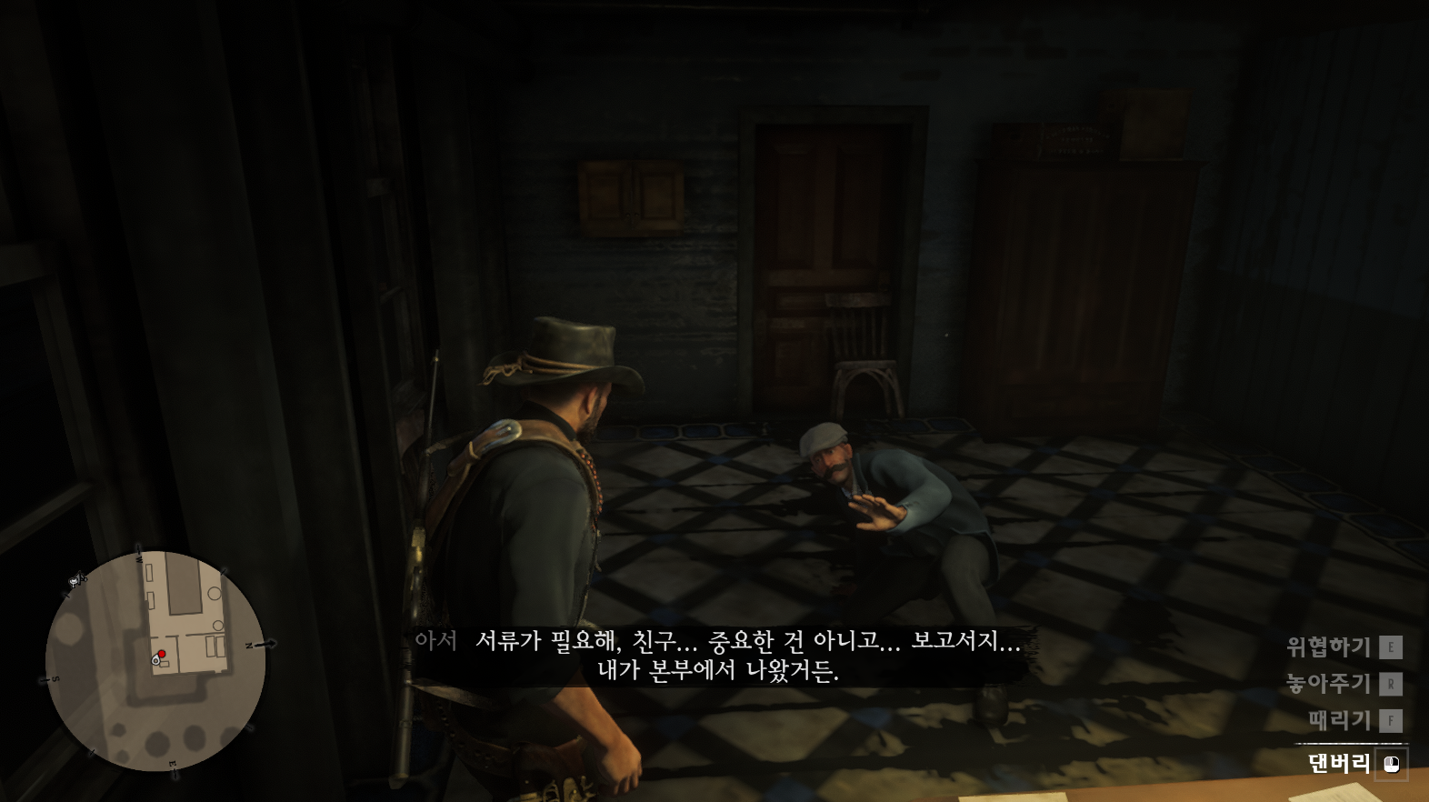 들어가면 앞에 보이는 댄버리를 심문하여